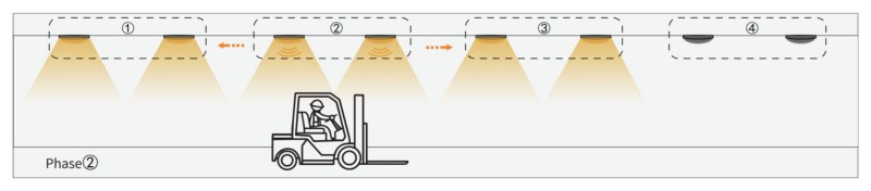2. هنگامی که اشیاء از طریق Group2 عبور می کنند ، سنسور Group2 گروه بعدی و گروه 3 را فعال می کند. چراغ های دیگر هنوز خاموش هستند.