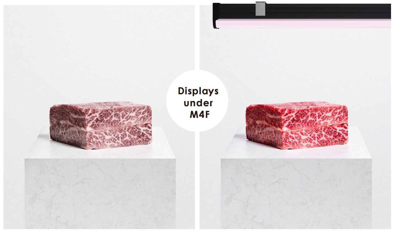 بر اساس نور نواری فوق باریک M4،Fanxstarمنبع نور را تنظیم کرده است تا طیف 4000K + 6500K + قرمز 660 نانومتری را به طور خاص برای بخش گوشت در سوپرمارکت ها ایجاد کند. تحت تابش این طیف نور گوشت، گوشتی که در سوپرمارکت ها می فروشیم می تواند آبدارتر و تازه تر به نظر برسد و در نتیجه فروش گوشت را افزایش دهد.